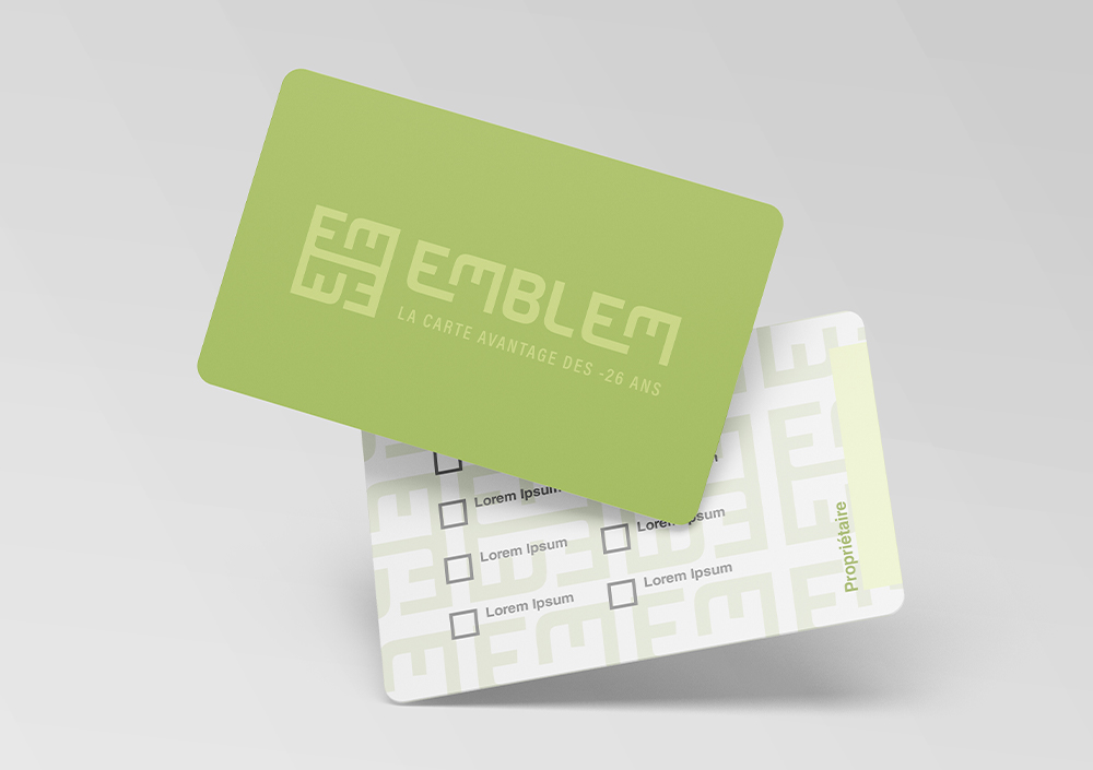 Restaurants, cinémas mais aussi forfaits de ski, la carte permet aux jeunes de l'agglomération de profiter d'activités commerciales à petits prix. Le logo est constitué d'une forme composée des lettres "E" et "M" enchevêtrées symbolisant la collaboration partenariale ; elle rappelle également la forme d'une fenêtre : l'entreprise offre une véritable vitrine à ses partenaires. Cette forme carré fait également allusion aux QR Codes, qui souligne une offre à caractère commercial.