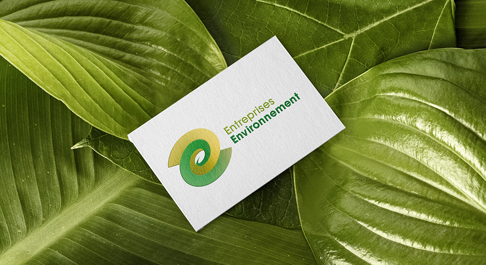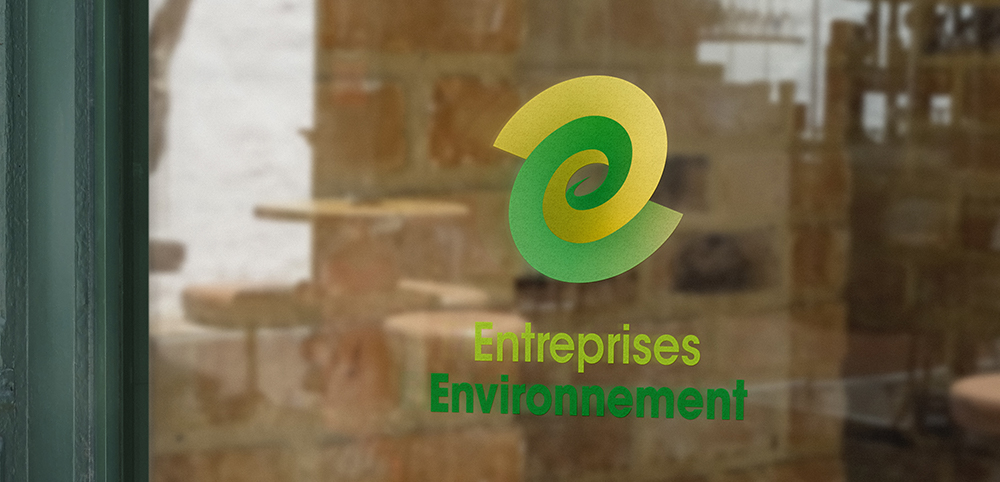Un pannel d'entreprises martiniquaises mutualisent leur réflexion et leurs actions en faveur de l'environnement sous l'égide d'une association. Entreprise Environnement, c'est une rencontre entre deux milieus parfois opposés : l'entreprenariat et l'écologie. C'est pourquoi le logo est construit en deux parties : deux "E" qui s'enlacent et représentent ces deux mondes, qui fusionnent en leur centre pour former un toutau sein duquel naît une jeune pousse. L'esthétique minimaliste du logo rappel un certain esprit corporatiste, lorsque les couleurs évoquent la végétation, la nature. Une typographie linéale sans empattement a été choisie pour son impact et son intemporalité.