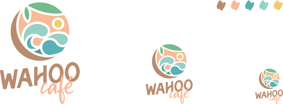 _Création d’un logo et de ses déclinaisons pour le Wahoo Café, un café/bar de plage situé le littoral martiniquais.