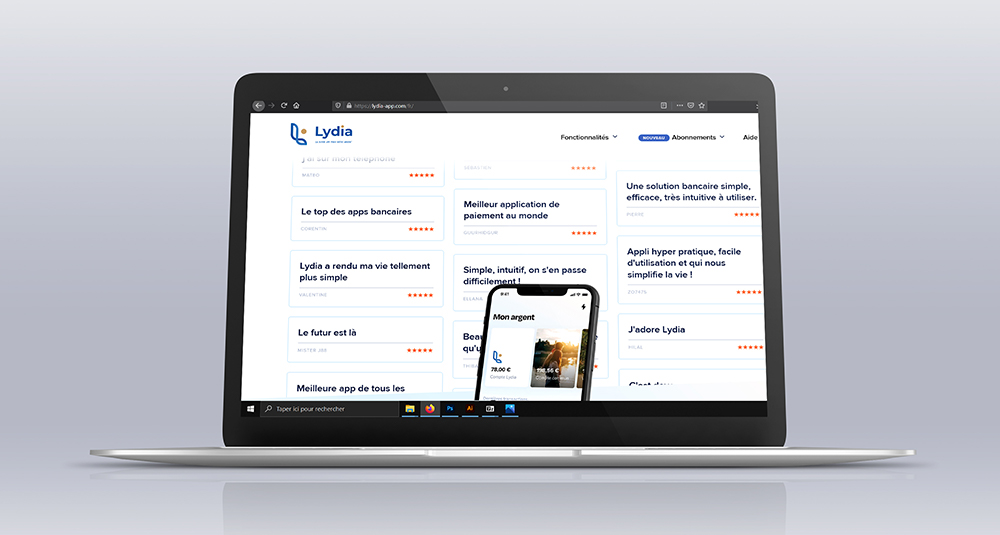 _Création d’une identité visuelle et ses ingrédients pour Lydia, une application de paiement mobile pour particuliers.
