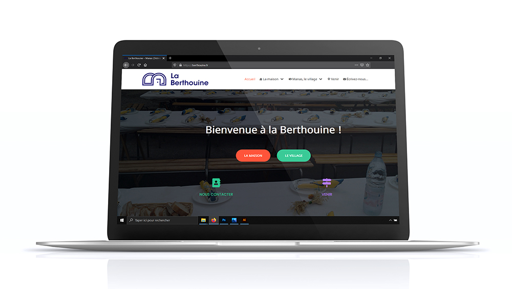 La Berthouine est un gîte de vacances à louer dans le village botanique de Manas en Drôme provençale. Vieille maison de pierres apparentes, son cachet réside dans son architecture d'intérieure : les plafonds de la grande pièce à vivre du rez-de-chaussée sont des arches entre-croisés. On retrouve leur forme caractéristique dans le logo.