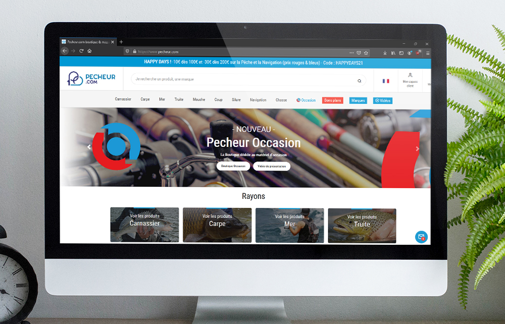 _Création d’un logo et d'une carte de visite pour Pecheur.com, une boutique en ligne d'équipements pour la pêche.
